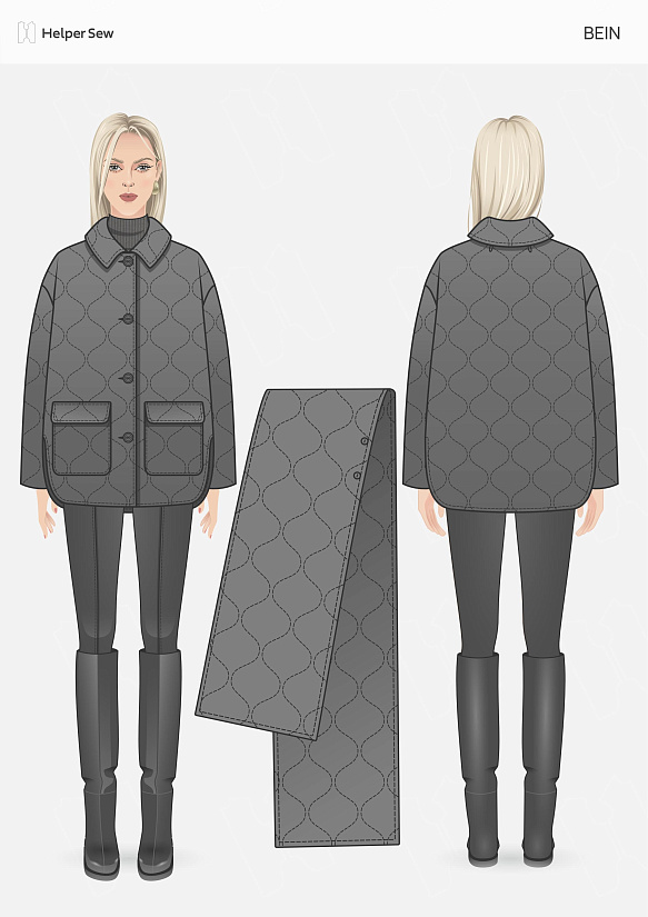 Выкройка понравилась, давно лежала в избранном, наконец я ее сшила, но без шарфа. Шила из готовой стёжки, это первый опыт работы со стёжкой, не все было гладко и просто. корректировок не вносила, ввиду больших прибавок взяла 46 р вместо 48.