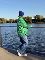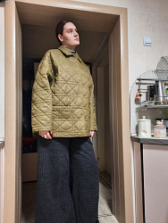 Куртку выбрала из-за простого силуэта, такой как раз годится для стежки. Почитала отзывы и выбрала себе размер 44, получился нужный мне объем. Обхват груди у меня 100 см, талия 83, бедра 100. Любимая куртка на данный момент)