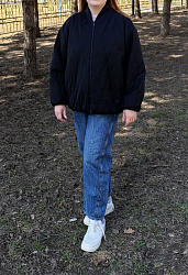 Отличная модель.Ничего не меняла, кроме как внутренний карман не стала делать.Верхняя ткань крапива Рами, утеплитель Альпалюкс 100 гр, подклад штапель. Получилась легкая и стильная куртка-бомбер. Сшила быстро,хотя я начинающая швея. Все очень подробно расписано в инструкции к пошиву. Спасибо вам за возможность легко и быстро шить одежду, ни как у всех.