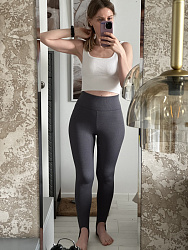 Очень удобные лосины. Широкая резинка хорошо подсобирает животик. Но на рост 162 мне оказались длинноваты, поднимала вырез штрипки примерно на 5 см.