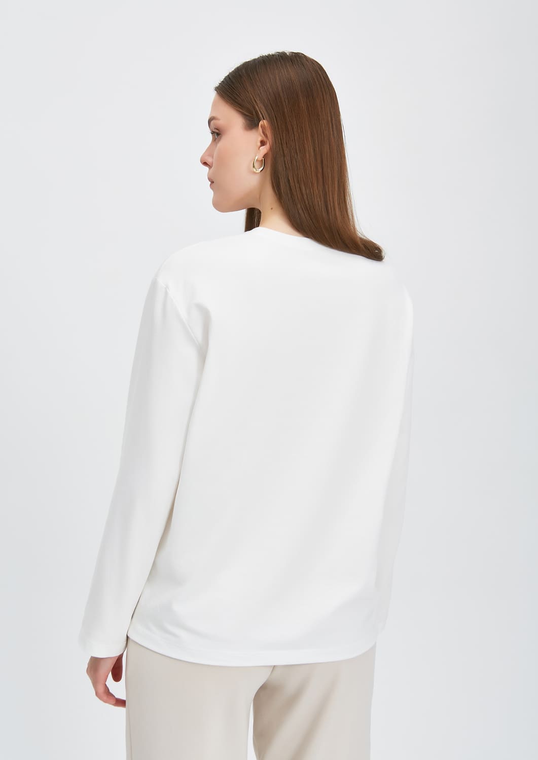 Сшила себе лонгслив, ничего не меняла, только чуть укоротила. Инструкция понятная и шьется он за пару часов, но у меня возникают трудности с бейка горловины... Хочу сшить второй такой же и попробовать удлинить бейку. По ощущениям как будто она короткая, с трудом собрала горловину...