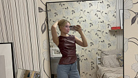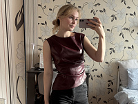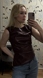 В восторге от выкройки, взяла свой размер по размерной сетки в меньшую сторону, село идеально. Шила из костюмной экокожи, получилось просто супер. Буду шить еще из костюмной, расход маленький, можно как утилизатор остатков отшивать эти топы.