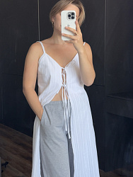 Сшила шикарный топ! Выкройка отличная, инструкция понятная. Внесла изменения из-за ограниченного отреза ткани, купленного в остатке. Подкладка полочек до уровня талии. Добавила третий ряд завязок. Очень довольна!