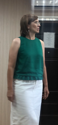 Топ получился прекрасный, выкройка простая и понятная, сшила тоже относительно быстро. Это конечно не корректировка выкройки, но я только добавила петельку из подкладочной ткани.
