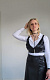 Топ стал стильным акцентом образа и отлично сочетается как с юбкой, так и с джинсами. Лаконичный, но с характером.