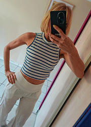 Классный топ! Сшила его наспех из выпадов ткани, оставшихся от шитья футболки дочери, и он стал моим любимым! Очень красиво подчеркивает плечи! Удлинила на 5 см, всё-таки фигура уже не та) Шила из кулирки 100% хлопок, мою и без того небольшую грудь безбожно сводит на нет, но из-за его удобства, этот недостаток я ему легко простила!