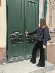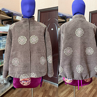 Выкройка очень понравилась. На свои параметры 102-85-102 взяла 48 размер, получилось то, что хотела. Рукава укоротила на 4 см, это для меня странно, тк. руки длинные. Вместо пуговиц поставила молнию, мне кажется, что так удобнее, и выглядит очень стильно. Шила из толстого итальянского лодена 100% шерсть. Бомбер получился теплый, уютный. Большое спасибо за выкройку!