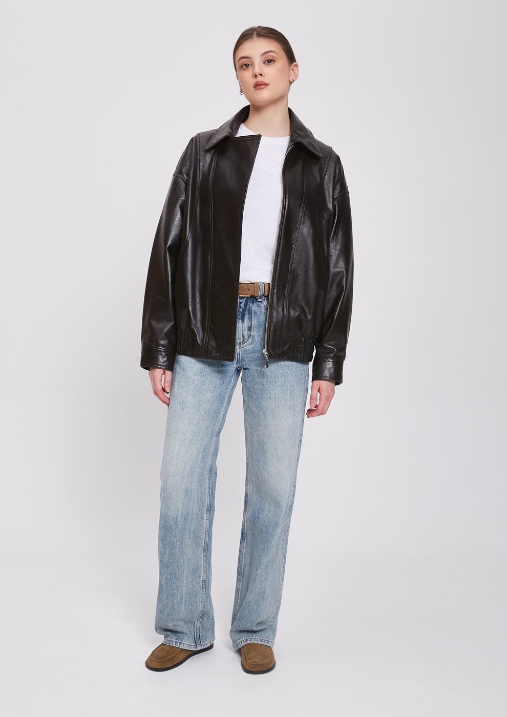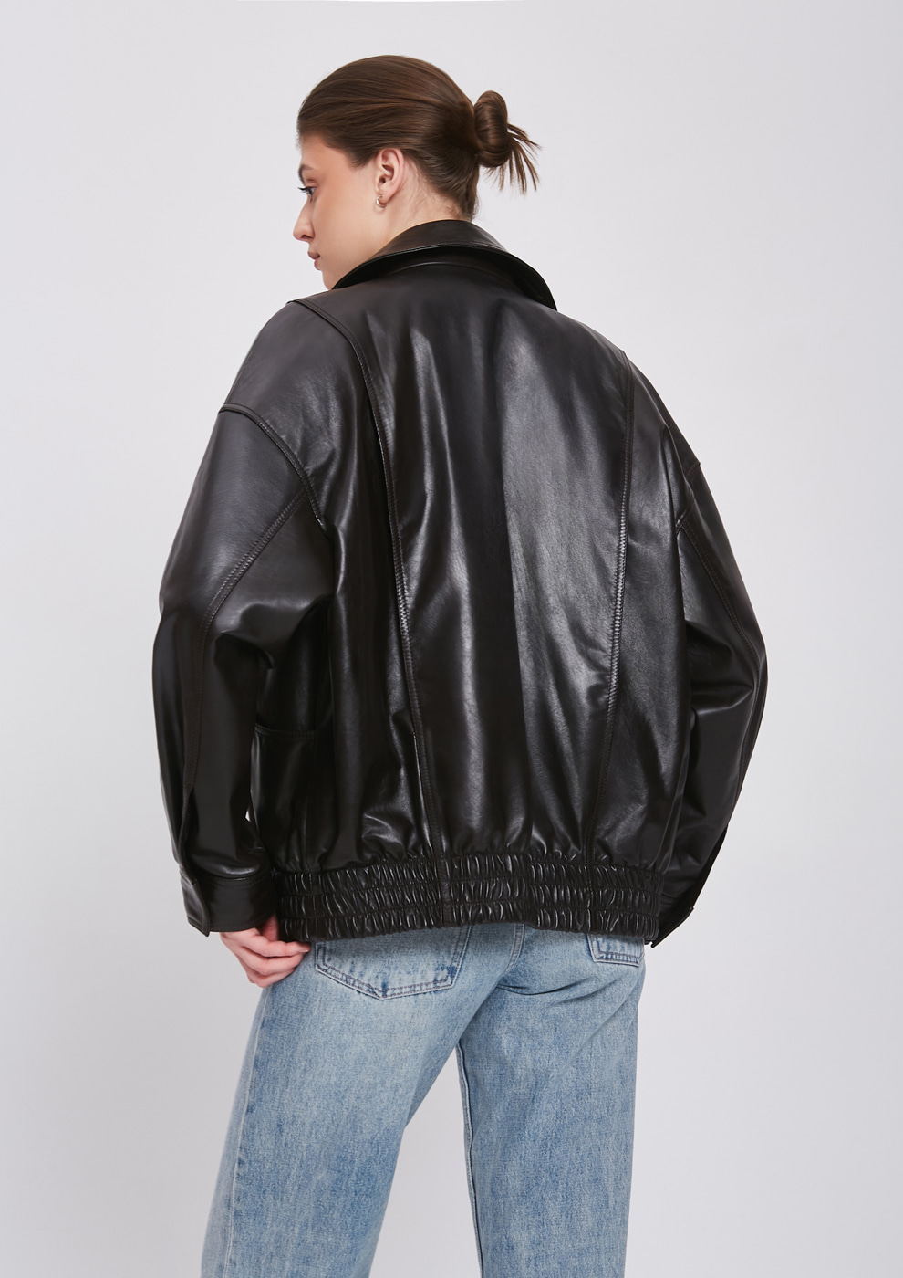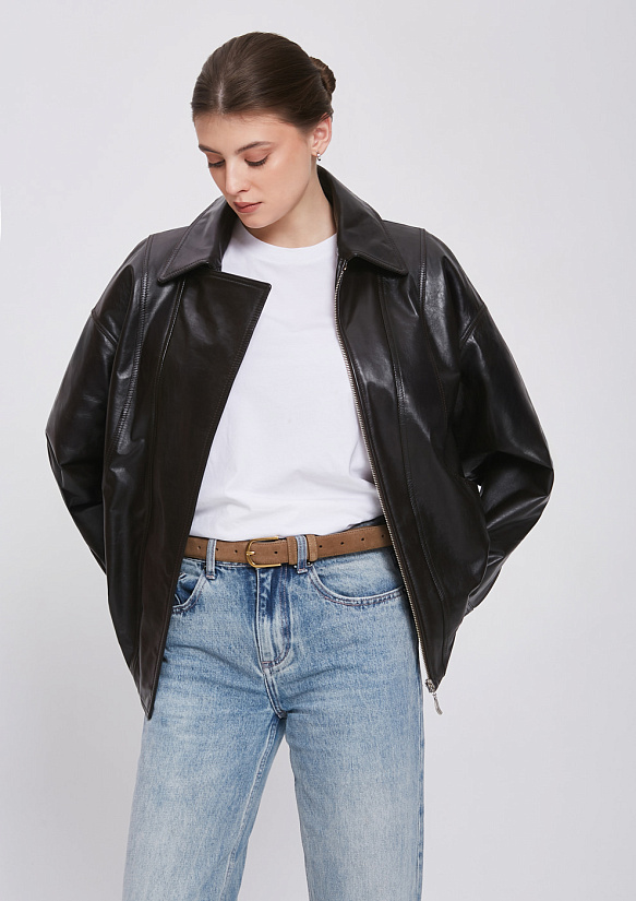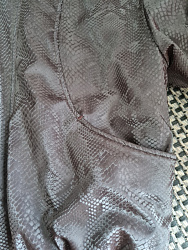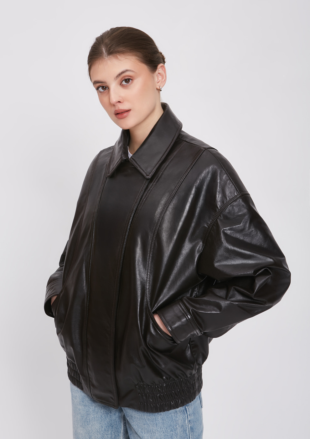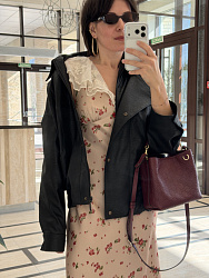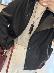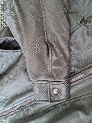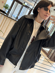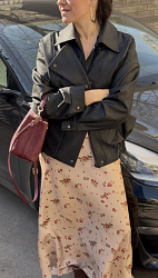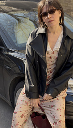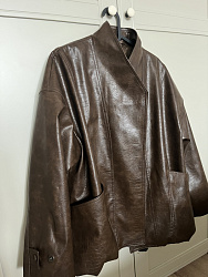 Куртка классная! Все поголовно ходят в одинаковых косухах, а эта выкройка заметно отличается. На улице обращают внимание! Объем хороший. Умеренный оверсайз. Шила из экокожи.