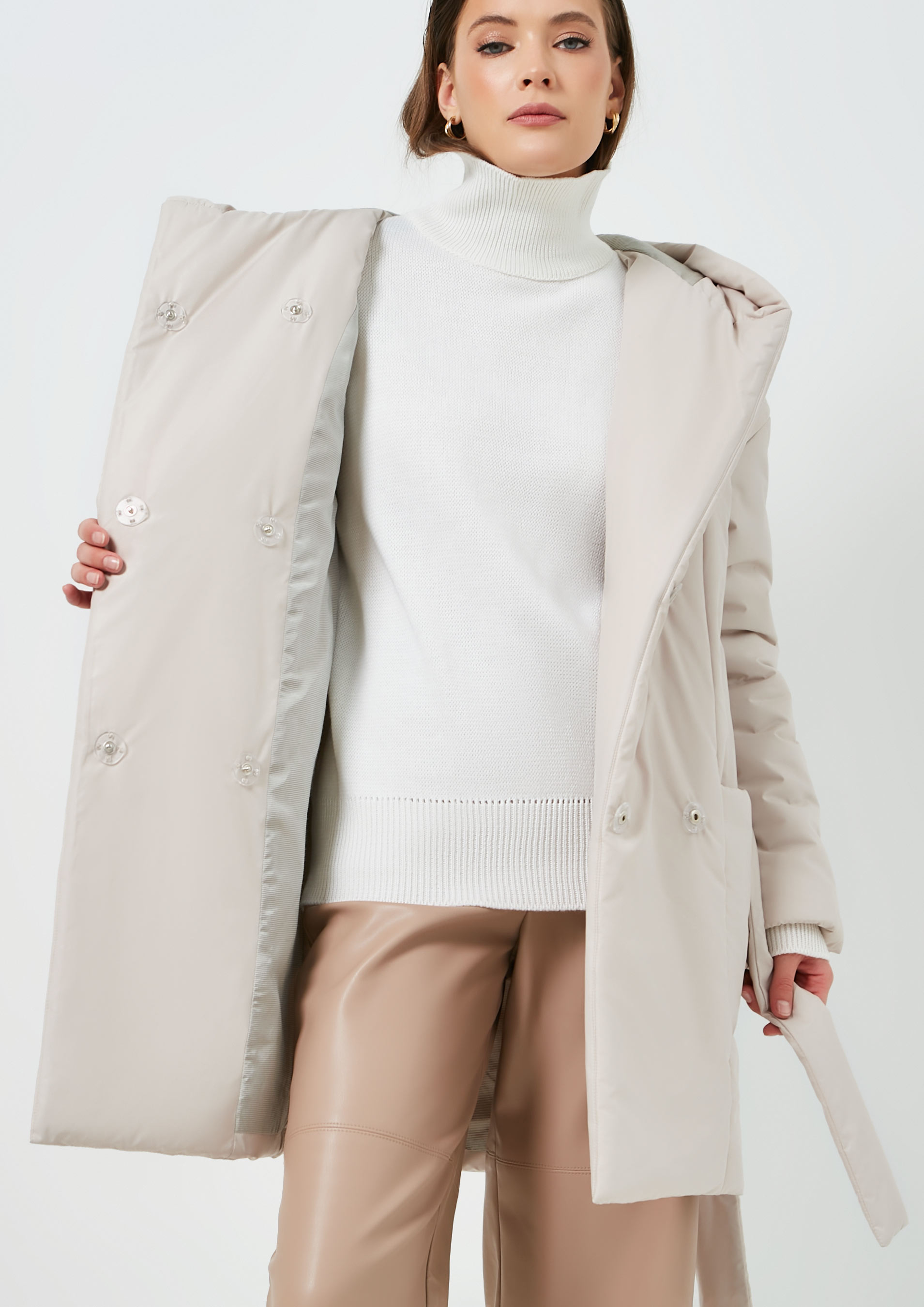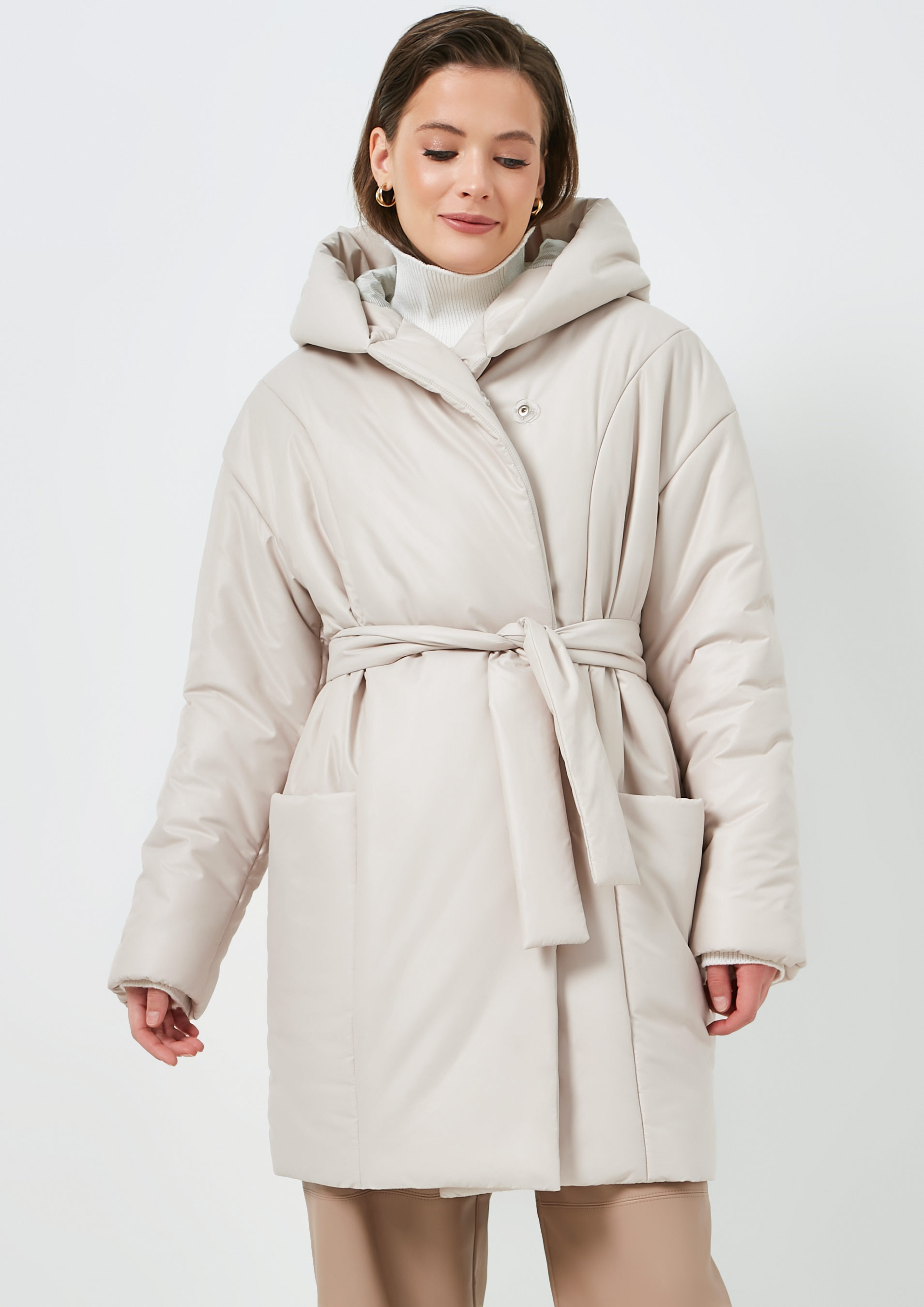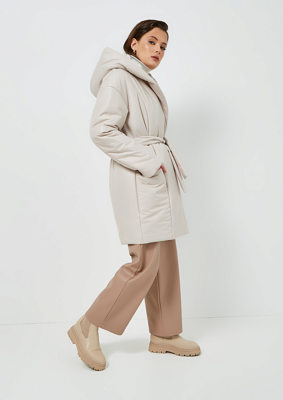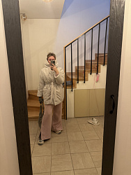 Брала на размер меньше, но сейчас бы взяла ещё на размер меньше. Для меня слишком большой объем. Носила с поясом.