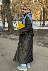 Для дополнительного утепления брала термофинн 100 и простегала его с ветронепродуваемой подкладкой. Это всё даёт определённый объём, но я брала саму выкройку на размер меньше, тогда не так массивно смотрится. Это выход для тех, кто не сильно любит оверсайз.