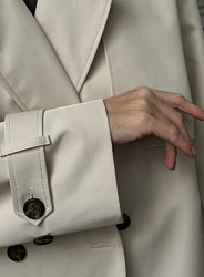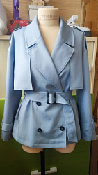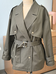 Сшила тренч в 44 размере из 100% хлопка с пропиткой. Шился легко за два дня, без учета декатировки, кроя и дублирования. Осталось дождаться тепла и выгулять.