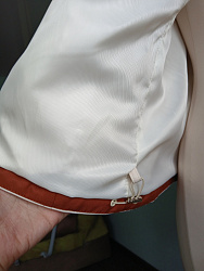 Мне не повезло с тканью. Заказывала онлайн шоколадного оттенка плательную джинсу, к великому сожалению, при установке кнопок ткань дала стрелки, да и цвет ближе к грязно-сиреневому