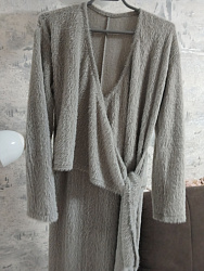 Шикарное платье - я в восторге. Шила из пушистого трикотажа. Почитав отзывы, взяла на размер меньше по ОГ. Это самое комфортное платье на запах. Шьется за несколько часов.