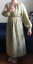 Очень понравилось это платье. Я брала 42 европейский размер, по своим меркам. Немного получилось объемное. Хотелось бы всё же чуток по меньше, но для летнего платья сгодится. Удлиняла длину, т.к. люблю платья в пол. и рукав сделала 34. Спасибо, сошью осеннее тоже)