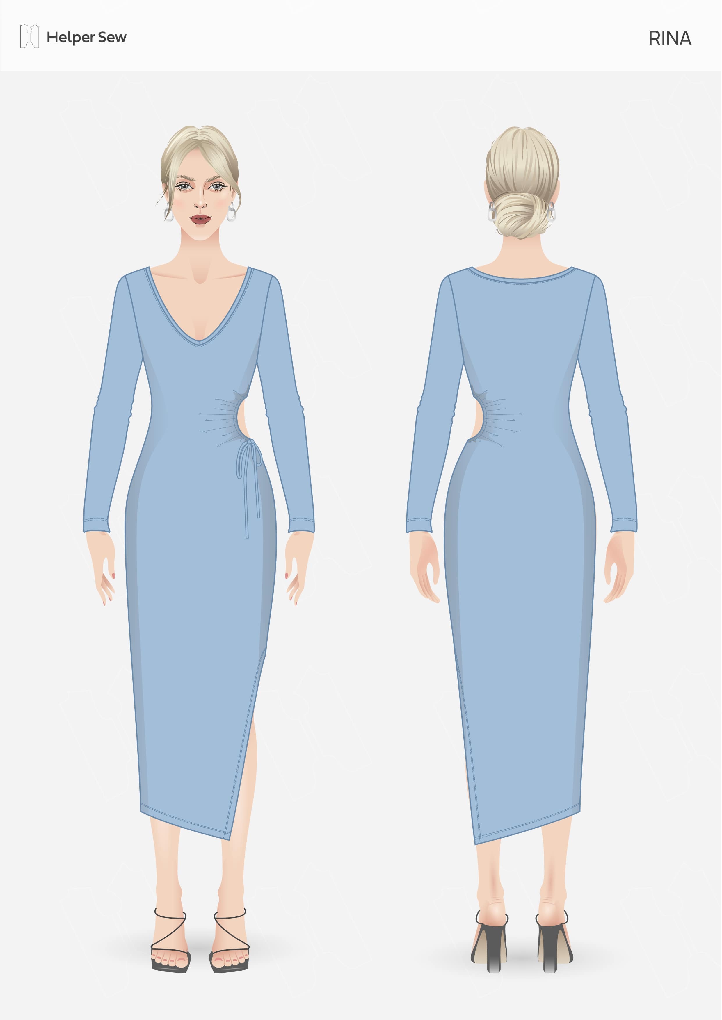 Выкройка классная. Трендовый фасон платья. Инструкция понятная, шить легко. Сшила уже два раза: с коротким и длинным рукавом. Для короткого редактировала вырез горловины.