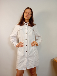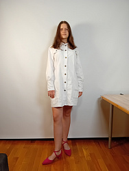 Когда я выкраивала, я заметила, что модель причудливая. Когда собирала, увидела, что детали, полочки и рукава разной длины. Проверяла и перепроверяла, что я не ошиблась, что это такая модель. Шла по инструкции 53 стр. шаг за шагом и все собралось. Стоит уровень сложности- средний. А джинсовка Мартина продвинутый. Джинсовку шить легче. Начало с выворачиванием клапанов фальшивых карманов сложнее, чем вшить клапаны в кокетку. В итоге - бомбическое платье.