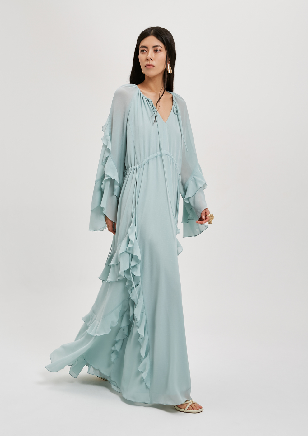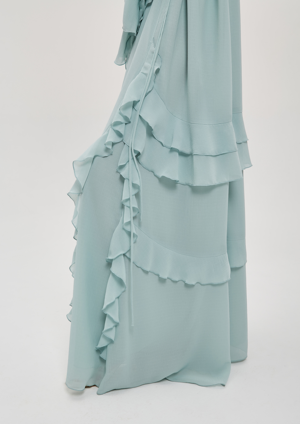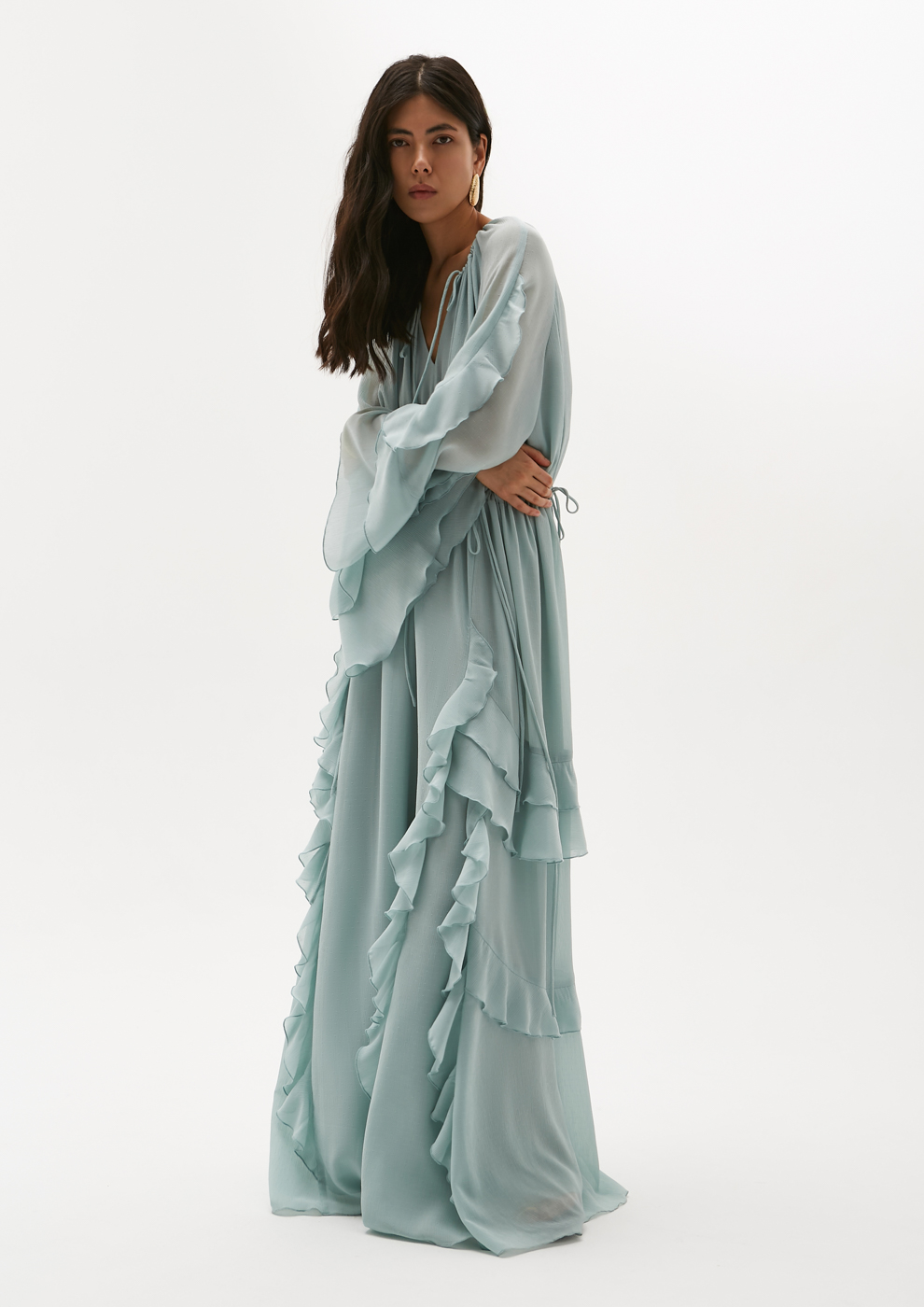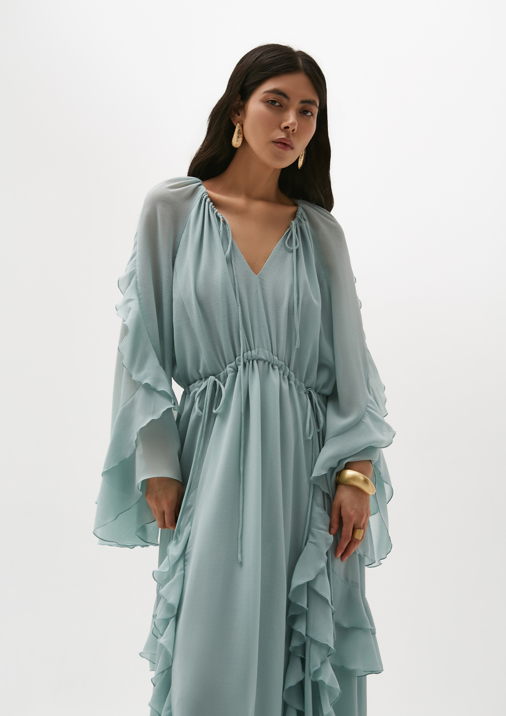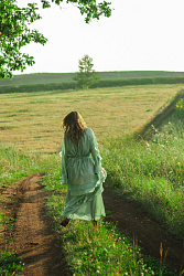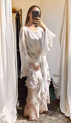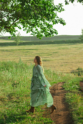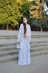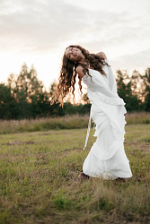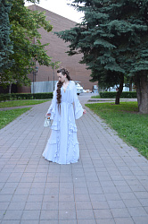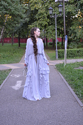 Потрясающее платье! Шьётся легко, правда, достаточно долго, но вид в итоге затмевает время пошива. За отсутствием оверлока обрабатывала воланы московским швом, а швы - французским. Получилось настоящее платье Лесной феи.
