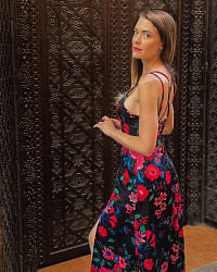 Выкройка отлично села. По желанию заказчика изменили немного спинку, сделали открытой, со шнуровкой. Юбку поставили полусолнце. Получилось просто🔥🔥🔥