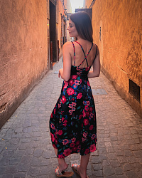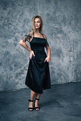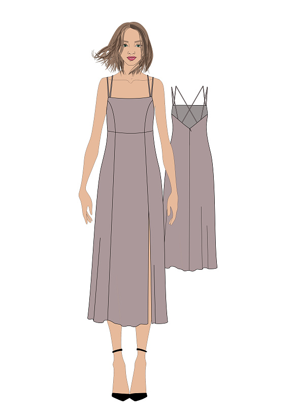 Очень удачная выкройка базового лаконичного вечернего платья. Очень нравится перекрестная спинка и разрез спереди. Шила из смеси вискозы.