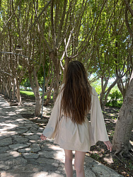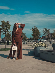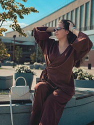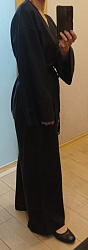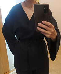 Изящная выкройка, которая очень хорошо "садится". Корректировки не делала. Рукава - роскошные! Очень удобная, красивая и правильная линия выреза горловины: не очень глубокая и не очень закрытая. Продуманная завязка, из-за чего ничего нигде не оттопыривается, не приходится постоянно поправлять запАх. Единственное неудобство было в пошиве: кимоно шила из купры. Для той технологии пошива завязок она оказалась толстовата. Поэтому взяла готовую тонкую ленточку, которая очень удачно "вписалась" в изделие. Спасибо большое!