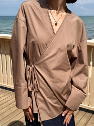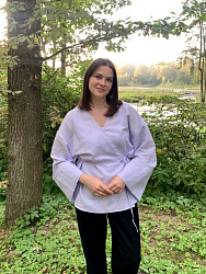 Отличная выкройка. Шьется просто, сидит хорошо. Длина рукавов мне подошла, ничего не меняла. Шила без оверлока, поэтому пришлось помудрить с отверстием для завязок.