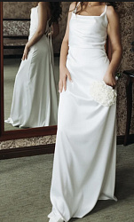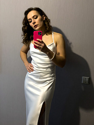 Замечательная выкройка, спасибо . Выкройку брала по груди , 44 размер , 2 полнотная . На бедра 102 см по бокам добавляла по пару сантиметров , небольшой шлейф по желанию . Материал плотный атлас 250гр /м молочный цвет с вб