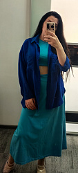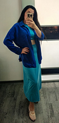 В готовом виде провисает перед юбки, но переделывать уже не было времени. Шилось срочно перед отпуском.