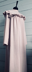 Платье очень удобное, отлично смотрится как с обувью на плоском ходу, так и с каблуком. Сшила за 3 дня. Инструкция понятная, вопросов при пошиве не возникло. Особенно понравился пункт с подробнейшим описанием навесной петли (отметила для себя, потому что у меня всегда с ними проблема). Шила из шелкового шифона, нижнее платье из подкладочной ткани, по составу - вискоза.