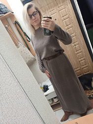 Платье шьется за час. Шила из пушистого трикотажа. Получилось уютное и стильное платье, простое, но не простое. Буду шить второе однозначно. Размер брала свой, по ОГ.