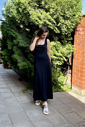 Платье сшила на одном дыхании. Очень легко, понятно и быстро. Смотрится шикарно и стройнит))) Укоротила бы лямки и в объёме убрала.