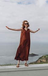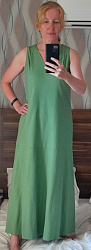 Платье сшила из смесового льна за пару вечеров. Ткань увесистая. Результат мне понравился. Шьется легко. Заменила размер с 46 на 44, так как похудела. Очень удобная, функция замены размера. Сейчас выкройки заранее не скачиваю, только если собираюсь шить. Выгуливала в отпуске. Фото только такое, не фотографировала на прогулке.
