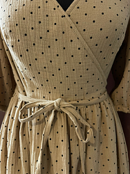 Классные рукава! На 92 объем груди показалось очень впритык, не вздохнуть. Возможно по этому не комфортно. У меня было 2 метра ткани, вместо заявленных. Подол вышел из прямоугольника. В процессе ходьбы поняла, что верхнюю часть лучше сделать под небольшим углом, что б не цеплялась ткань друг об друга. Попробую взять побольше размер, модель интересная. Не буду больше делать завязки вплотную. Попробую изменить модель на свободнее.
