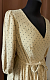 Платье приталенное сверху, а на юбке сборка, за счёт этого живот прекрасно маскируется.