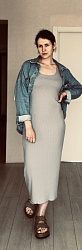 Отличное базовое платье-майка! Очень понравилось, что сзади есть разрез и поэтому при ходьбе платье не "ползёт" наверх. Не совсем село по спинке и бёдрами, но не отшивала макет, поэтому след раз сделаю корректировку на рост. Спасибо за выкройку! Все легко и просто.😉