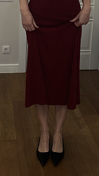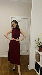 Платье понравилось, но можно было бы сделать в районе талии и бедер посвободнее . Не смогла на распошивальной машине подшить низ, из-за высокой плотности джерси , подшила вручную.