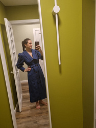 Платье получилось просто восторг! Ходила в нем на мероприятие. Люди не верили, что сама сшила. Шить было одно удовольствие. По груди село идеально, а вот бедра пришлось расставлять (наверное я не правильно выкройку купила, бывает у меня такое), но это ни чуть не повлияло на настрой)
