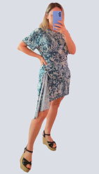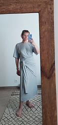Выкройка понравилась. Шьётся очень легко. Укорачивала завязки, для меня слишком длинные. Ожидала, что драпировка будет скрывать животик, но увы, что имеем то и любим. Носила всё лето с удовольствием.