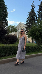 Платье вышло отличное, сшила себе и доче в более короткой длине. Очень интересно выглядят завязки, универсальная модель. Буду еще шить по этой выкройке.