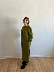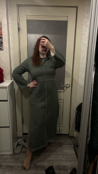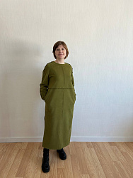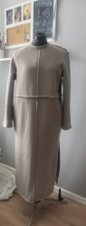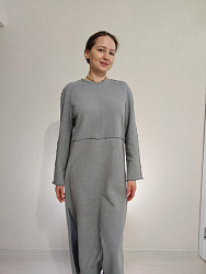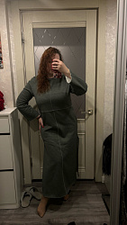 Платье классное, удобное! Шьется быстро и легко. Шила из футер 3нитки стриженный начес. Мне выкройка очень понравилась, и обработка интересная, швами наружу. Из изменений горловину обработала полосой футера, края открытые, очень интересный эффект получился.