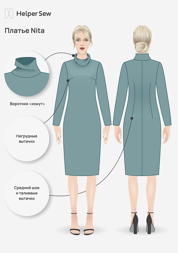 Сшила платье из плотного трикотажа. Очень понравилось, село отлично. Инструкция понятная, справится даже новичок. Внесла изменения - сделала разрез по шву спинки, для удобства передвижения.