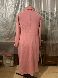 Неплохая выкройка. Шила его из футера с начесом. Получилось отличное теплое платье для прогулок. На мой взгляд, слишком приталенное для трикотажа и вытачки на груди лишние. Но это лично мое мнение.