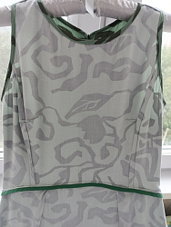 Сложность возникла при обработке плечевых швов/рукавов. В инструкции, к сожалению, не хватает пояснений, как именно выворачивать детали. Это оказался непростой узел, с которым я столкнулась впервые. На первой попытке ошиблась при соединении, а когда распорола, уже не смогла спасти платье из-за надсечек. Пришлось выбросить.