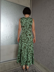 Это мое первое изделие на себя по выкройкам Helpersew. Огромное спасибо за полнотные группы! Ничего не пришлось уменьшать в объемах. Выкройка понравилась, поэтому решилась сшить из вискозы с рисунком. Шила без подкладки, т.к. ткань не просвечивает. Проймы и горловину обработала косой бейкой из основного материала. Боковые и рельефные швы французским швом, остальные - готовой хб косой бейкой. Очень хочется такое же платье, только неотрезное и с рукавами.