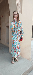 Плюсы платья всем понятны - никто не останется незамеченным! Напишу о сложностях. Первое - есть в таком платье неудобно, завязки постоянно попадают в тарелки)) Второе - это обработка низа и разреза на тонких тканях. У меня недорогая бытовая машинка, шов стягивает и выглядит не очень. Широкую подгибку аккуратно сделать мне было сложно. Когда я начала очень детально рассматривать подгибку низа на сайте, я увидела там другую обработку.... Поэтому обработала оверлоком, купила паутинку для подгибки низа и за 30 минут низ и разрез был приклеен))) Если кто-то не планирует платье часто носить и стирать, считаю, способ рабочий.