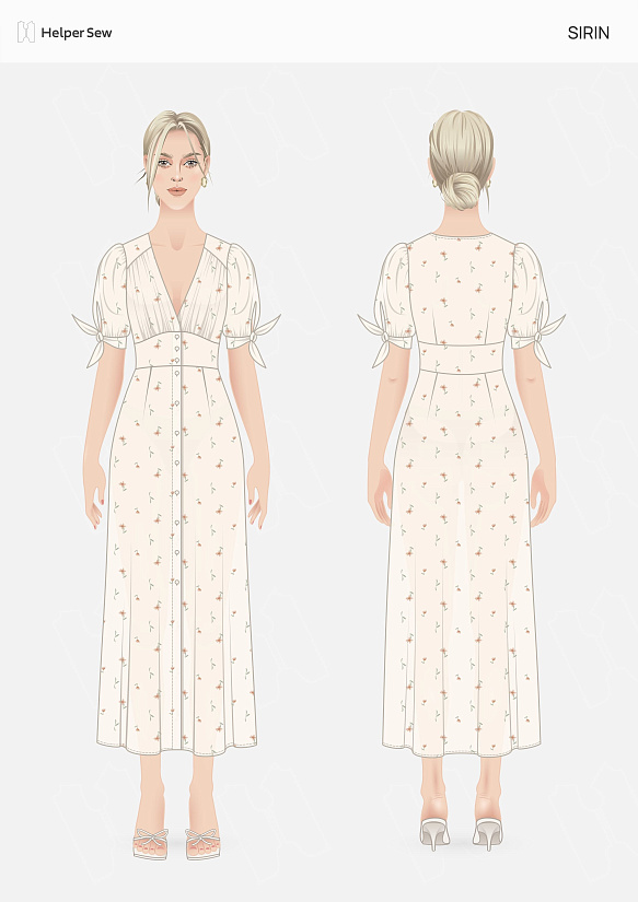 Платье шилось довольно легко, инструкция понятная. Я тоже столкнулась с тем, что в районе бёдер объём недостаточный, с припусков взяла по 0,5 см и тем самым стало лучше. Платье полностью выполнила без использования оверлока. Завязки на рукавах убрала, сделала простые манжеты.