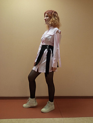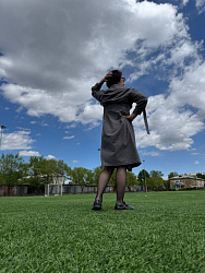 Сложная модель, я не стала пояс шить, и зря. Чего-то не хватает. Я бы удлинила, почему-то получилось совсем коротко. Рукава и другие детали очень классные. Шила из хлопка рубашечного.