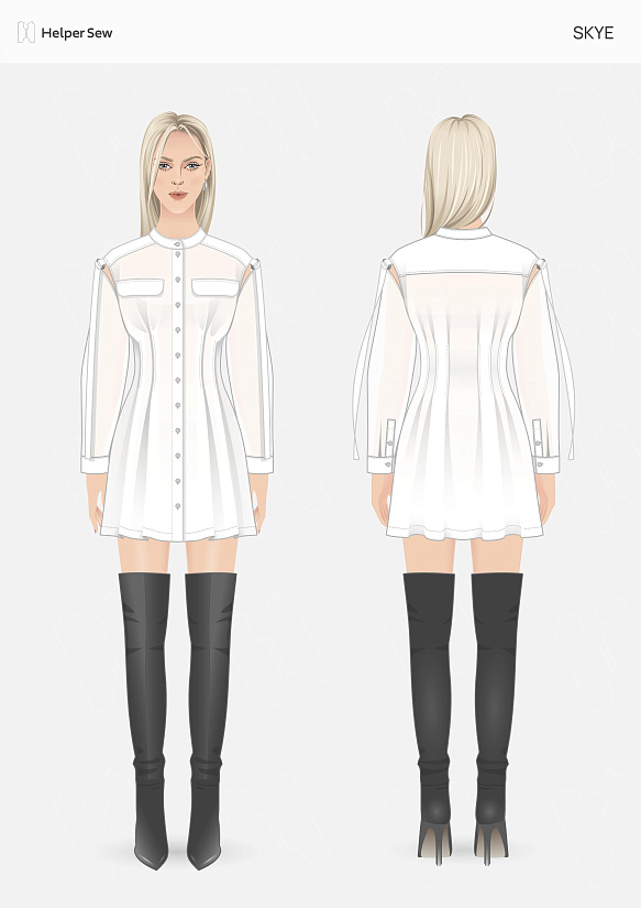 Универсальное платье - рубашка. Я шила полный образ с баской на Новый год. А потом носила в офис. Очень понравилась выкройка!