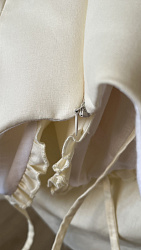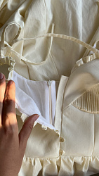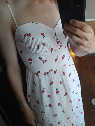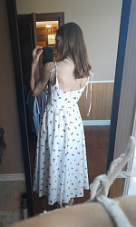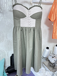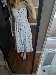 Красивый сарафан! Очень нежно получилось. На моём скромном размере лиф смотрится неплохо. Из корректировок убрала юбку-баллон и рюши. Длину тоже немного уменьшила. Самое сложное - это обработка лифа, 1,5 часа делала складки, но они того стоят. В целом сшила за 2 полноценных вечера, переходящих в ночь 🙂. Осталось пуговицы пришить на лифе и бретели обработать. И может быть кружево пришью по низу подкладки.