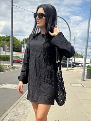 Сшила из гофры. Сама выкройка в шитье очень лёгкая, но тяжело было именно шить из этого материала. Концы не обрабатывала. Когда выкроила и сшила, при поднятии рук платье слишком задиралось. Из остатков ткани сшила шортики под низ.
