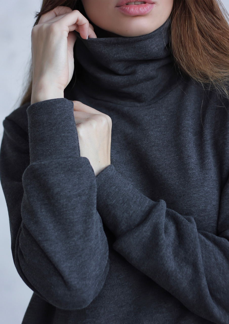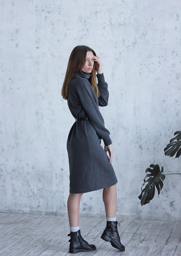 Получилось очень уютное и теплое платье. В пошиве использовала футер 3-ку с начесом. По размеру взяла 50 на свой 46, чтобы было свободное облегание (оверсайз).